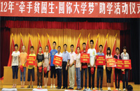 2012年9月5日,在東港區(qū)慈善總會(huì)2012年慈善助學(xué)金行動(dòng)中再捐資12萬元,幫扶60名即將邁進(jìn)大學(xué)校門的貧困學(xué)子圓了大學(xué)夢(mèng)。