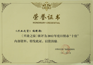 2013年3月,《興業(yè)之窗》榮獲“2012年度日照市十佳內(nèi)部資料”