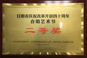 ·2018年10月,日照市慶祝改革開放四十周年合唱藝術(shù)節(jié)二等獎
