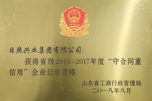 ·2018年8月,興業(yè)集團獲得省級2016-2017年度守合同重信用企業(yè)