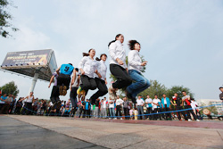 2012年9月22日,第八屆職工運(yùn)動(dòng)會(huì)跳繩比賽在王府花園南廣場(chǎng)舉行。