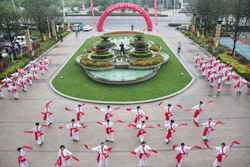 2013年9月28日,第九屆職工運(yùn)動(dòng)會(huì)在興業(yè)財(cái)富廣場(chǎng)舉行,圖為社區(qū)中老年文體活動(dòng)俱樂(lè)部精彩的開(kāi)幕式表演。