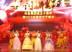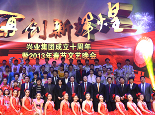 “再創(chuàng)新輝煌”興業(yè)集團2013年春節(jié)聯(lián)歡晚會歷時2個多小時,節(jié)目形式有歌舞、雜技、相聲、器樂、戲曲、情景朗誦等,內(nèi)容豐富,精彩紛呈;特別是央視著名主持人小尼和國家一級演員李玉剛等明星的加盟,讓整臺晚會無比璀璨;借助演播大廳極具現(xiàn)代化的舞美燈光效果驚艷四座,為我集團成立十周年畫上濃墨重彩的一筆,充分展示了我集團的企業(yè)實力,謳歌了興業(yè)人艱苦奮斗、團結(jié)協(xié)作、拼搏進取的創(chuàng)業(yè)精神和興業(yè)報國的高尚情懷,也為港城人民獻上了一場精彩、難忘、歡樂、美好的文化盛宴。
