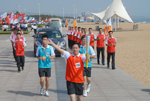 秋高氣爽,風(fēng)和日麗。9月23日上午,日照海濱彩旗飄揚(yáng),萬眾歡騰,主題為“祝福祖國,共享全運(yùn),國泰民安,傳遞和諧”的中華人民共和國第十一屆運(yùn)動(dòng)會火炬?zhèn)鬟f活動(dòng)在日照舉行。集團(tuán)董事長丁杰光榮成為全運(yùn)會的火炬手,參加了當(dāng)天全運(yùn)會火炬日照傳遞活動(dòng)。
