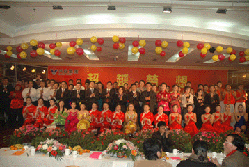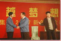 瑞犬凱歌辭舊歲,花豬起舞賀新年。2月6日晚,凱萊大酒店會展中心 內(nèi)歌聲悠揚、掌聲陣陣,“2007年日照興業(yè)集團迎春聯(lián)歡文藝晚會”正在這里舉行。集團領導丁杰、王建國、韓金軍、趙文強、申作華、李麗萱、李春賢以及集團機關、各分公司的標兵、先進工作者、職工代表近400人一起興致勃勃地觀看了演出。全國政協(xié)委員、民革中央畫院院長、國畫大師宋雨桂應邀出席了晚會。市內(nèi)各大銀行、日照日報、日照電視臺等單位的領導、記者、工作人員也觀看演出,歡聚一堂,共慶新年。